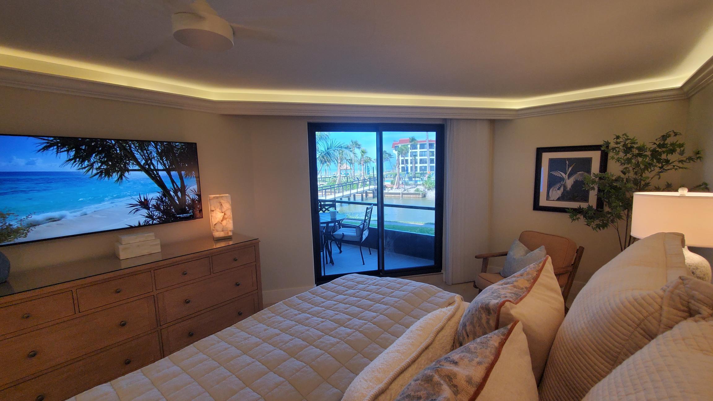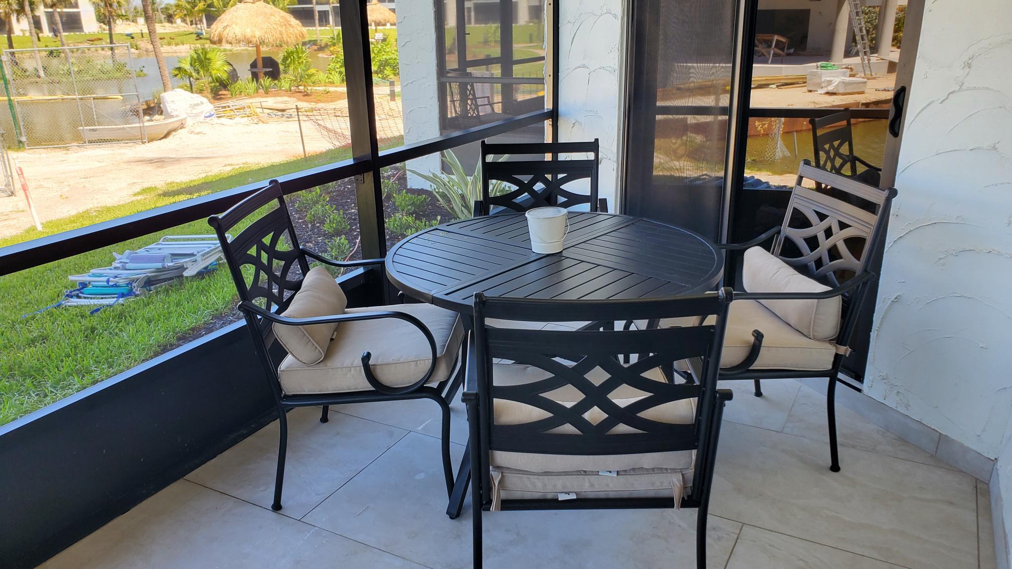 Your private, screened lanai offers a four-person dining table, perfect for morning coffee or sunset cocktails. Enjoy easy access to the courtyard, pool, and beach, all while keeping the bugs at bay.